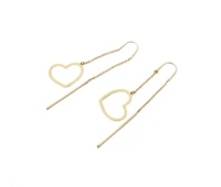 ARETES DE ORO LARGO EN FORMA DE CORAZÓN